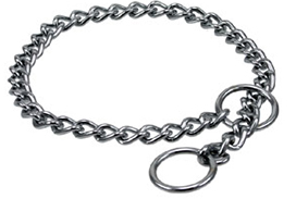 Chain Slip collars, also referred to as choke chains, are intended for training purposes only. Bark Place does not recommend this type of because they could damage your dog's neck. If you do choose to get a choke chain for your dog, learn how to use it properly. Chain slip collars should be used with caution and never be left on your dog when unattended or during play time with other dogs, as they pose a strangulation hazard.