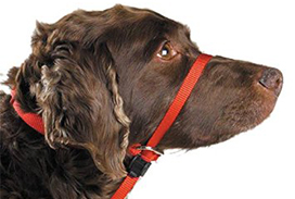 Head collars or halters slightly resemble muzzles, and very effective. These halters act more like harnesses for the head and are intended to help train a dog to walk on a leash and heel. When a dog pulls on the leash, the halter will cause the head to turn. When used properly, head collars can successfully discourage pulling and support other training. Head halters should not be left on unattended dog or dogs on a very long lead, as they may be able to back out of some types of head collars.